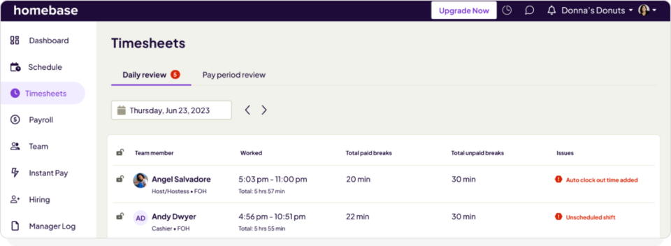 The Homebase timesheet system is built for businesses that just need to capture in-and-out data. It’s effective for general retail but can feel light on accountability for high-volume teams.