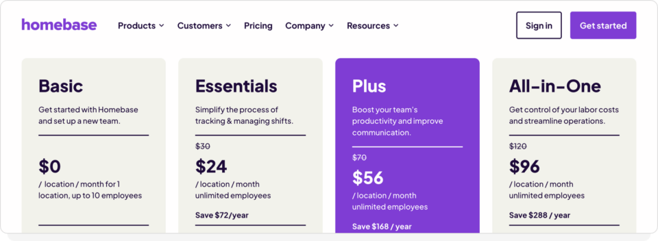 Homebase uses a per-location pricing model. While this appeals to single-site micro-businesses, it can create frustration when your needs expand and you want to optimize costs.
