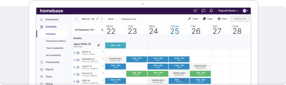 - Limitations: On the Homebase basic plan, scheduling is fairly manual. You’re still the one checking who’s available, who’s qualified for a specific role, and who’s approaching overtime.